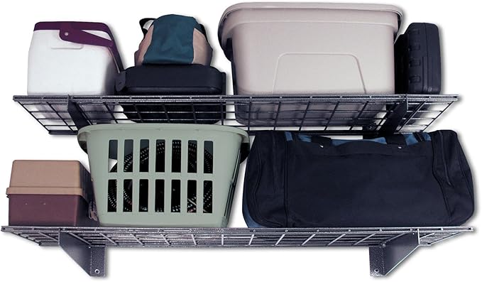 • Space-Saving Design: The low-profile brackets maximize your storage area, allowing for easy placement of oversized items and optimizing space efficiency in your garage, laundry room, or any area in need of some extra space; plus, this shelf is compatible with Hyloft's 00652 accessory hook for extra organization