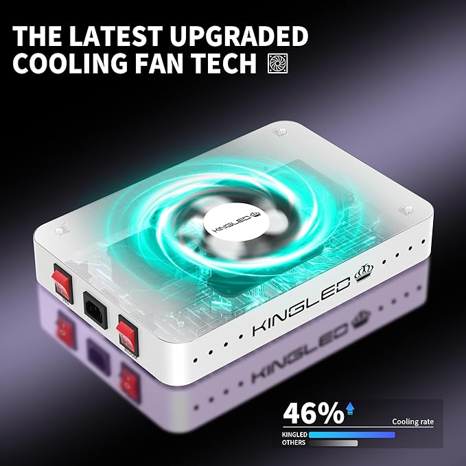 - Efficient Heat Dissipation: The aluminum heat sink and metal construction make excellent heat dissipation, keeping the temperature within optimal levels (50ยฐf to 60ยฐf); This cooling system prevents overheating, allowing the light to work efficiently without harming plants; Having the high-speed mute fans, the light remains quiet and stable, increasing its lifespan