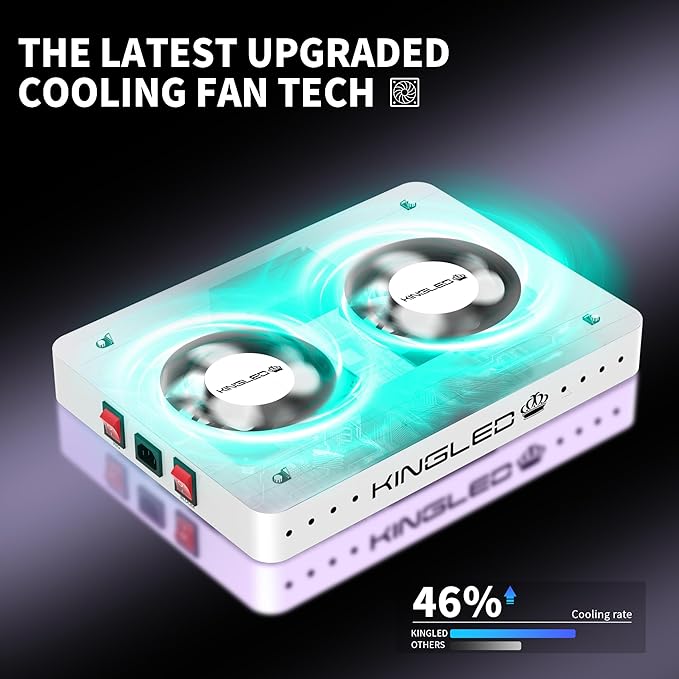 - Efficient Heat Dissipation: The aluminum heat sink and metal construction ensure excellent heat dissipation, keeping the temperature within optimal levels (50ยฐf to 60ยฐf); This cooling system prevents overheating, allowing the light to work efficiently without harming plants; Having the high-speed mute fans, the light remains quiet and stable, increasing its lifespan