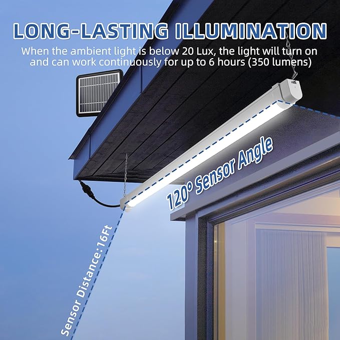 - Energy Efficient:Powered by solar energy, no need for grid electricity. This portable solar power shop light illuminates your carport shed camper or wherever you need it, give bright lightting in locations that don't have direct access to electrical power