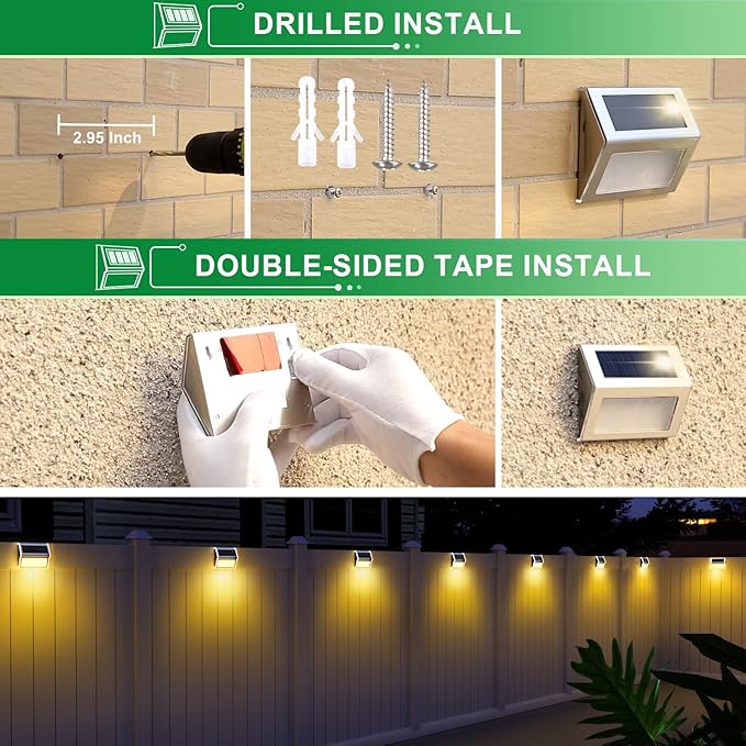 - Waterproof Design-Easy Installation: High ABS and stainless steel make them excel in durability. Unlike plastic lampshades, our Stainless Steel light body remains from yellowing and corrosion and is perfect for outdoor use. Simple appearance, or punch two holes, only spend within 5 minutes, and no complicated installation procedures.