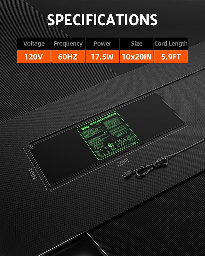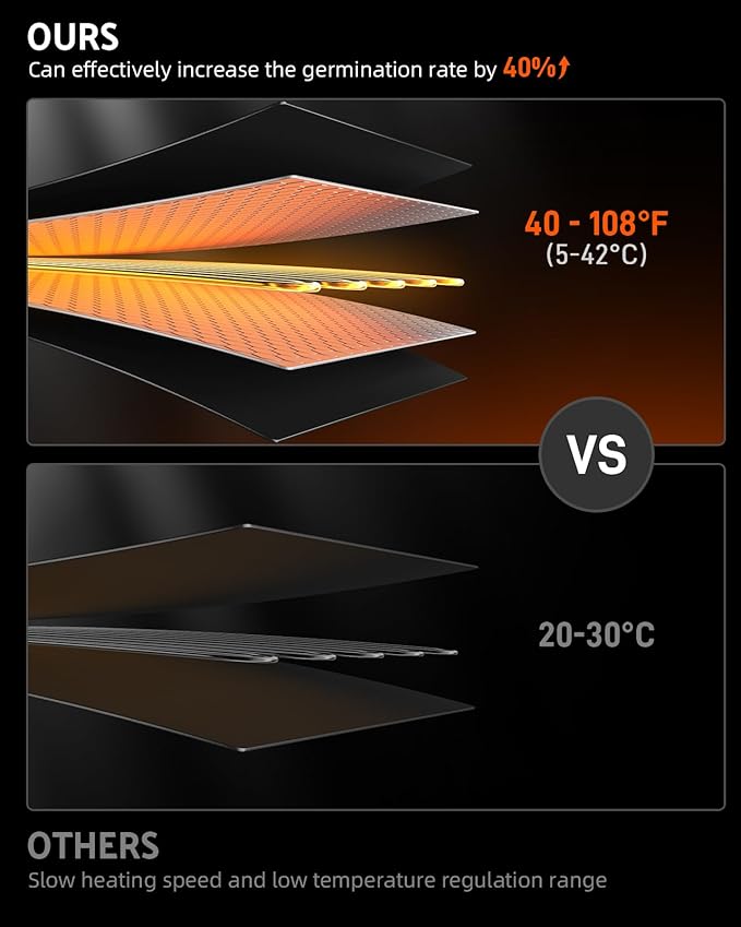• Reliable results: iPower has a professional heating pad that can keep the temperature at 10 ° F-20 ° F (6 ° C-12 ° C) higher than the surrounding air temperature, making it the best choice for temperature-sprouting seeds.