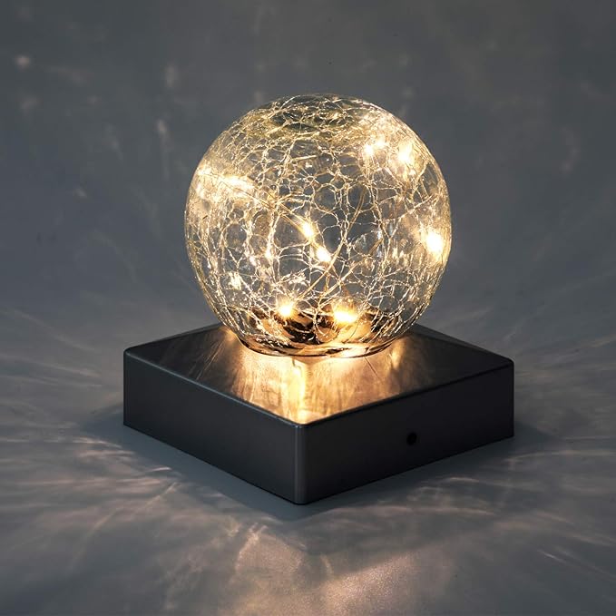 • PRODUCT SPECIFICATIONS: 10 pcs copper wire LEDs in each post cap light with an appealing crackle glass design, it makes your home stand apart. All the post lights are made by high efficient solar panels and high quality crystal glass.