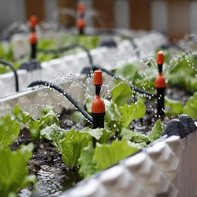 • ✔New Upgraded: Upgraded irrigation system dripper. The dripper and fixed rod are combined into one, the installation is more convenient, simple and fast Adjustable spray or drip irrigation modes, which allow each plant to be well looked after.