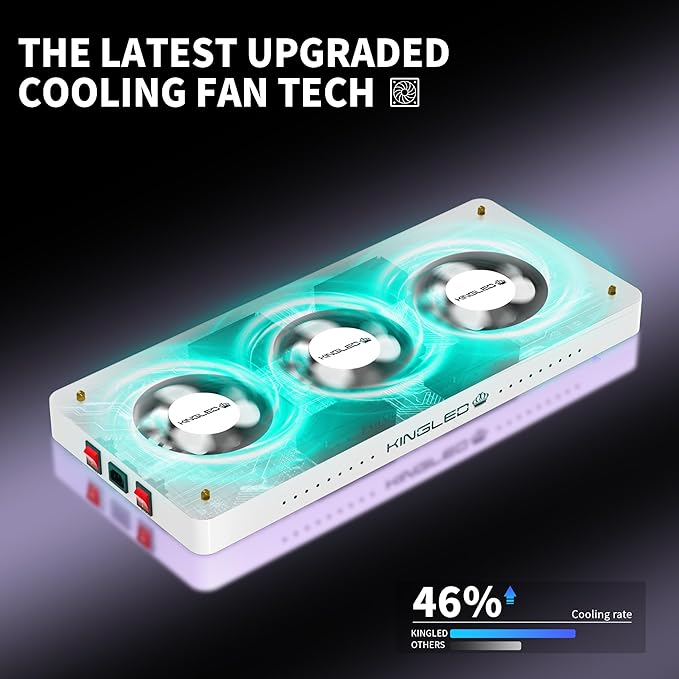 - Efficient Heat Dissipation: The aluminum heat sink and metal construction ensure excellent heat dissipation, keeping the temperature within optimal levels (50ยฐf to 60ยฐf); This cooling system prevents overheating, allowing the light to work efficiently without harming plants; Having the high-speed mute fans, the light remains quiet and stable, increasing its lifespan