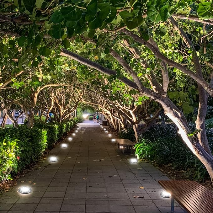 • Upgraded Design:12Pack 12 LED lamp beads solar ground lights, making the product have a larger lighting range than similar solar lamps, waterproof and durable, can withstand rain and snow weather and 80KG standing body.