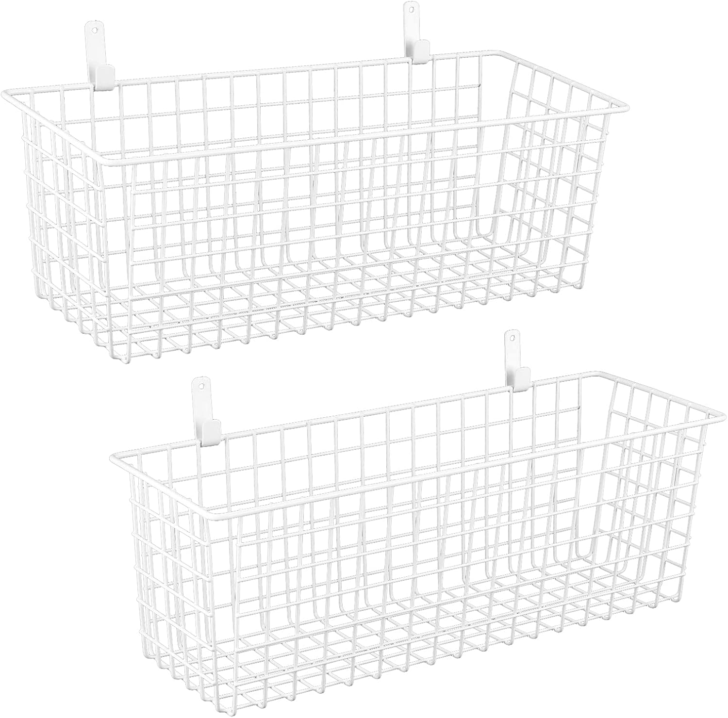 2 Sets Extra Large Hanging Wall Basket, White Metal Wire Baskets with Steel Hooks for Organizing, WallmountedFruit Vegetable Toy Snack Storage, Home Kitchen Bathroom Laundry Pantry Organizer