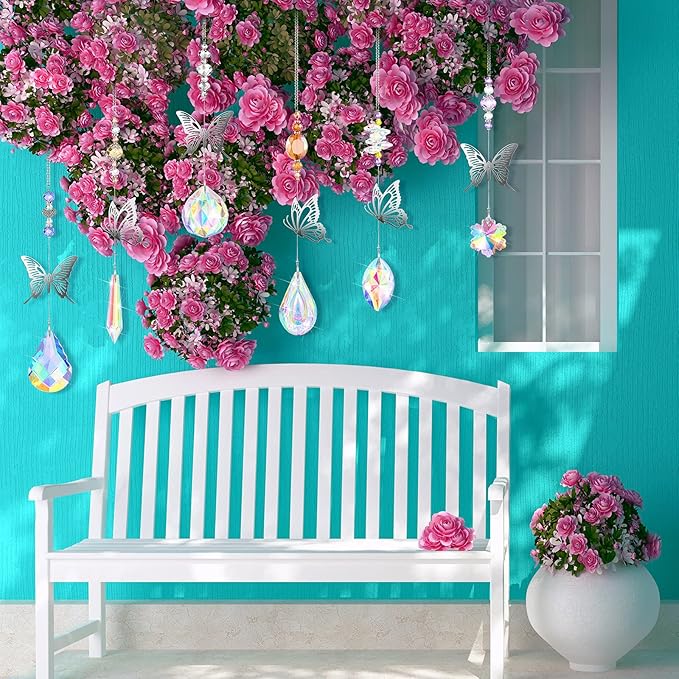 • DECORATE INDOOR AND OUTDOOR SPACES: You can use these Colorful Crystal Chandelier both indoors and outdoors. to hang them on your curtains, chandeliers, windows, walls,plants,or car.