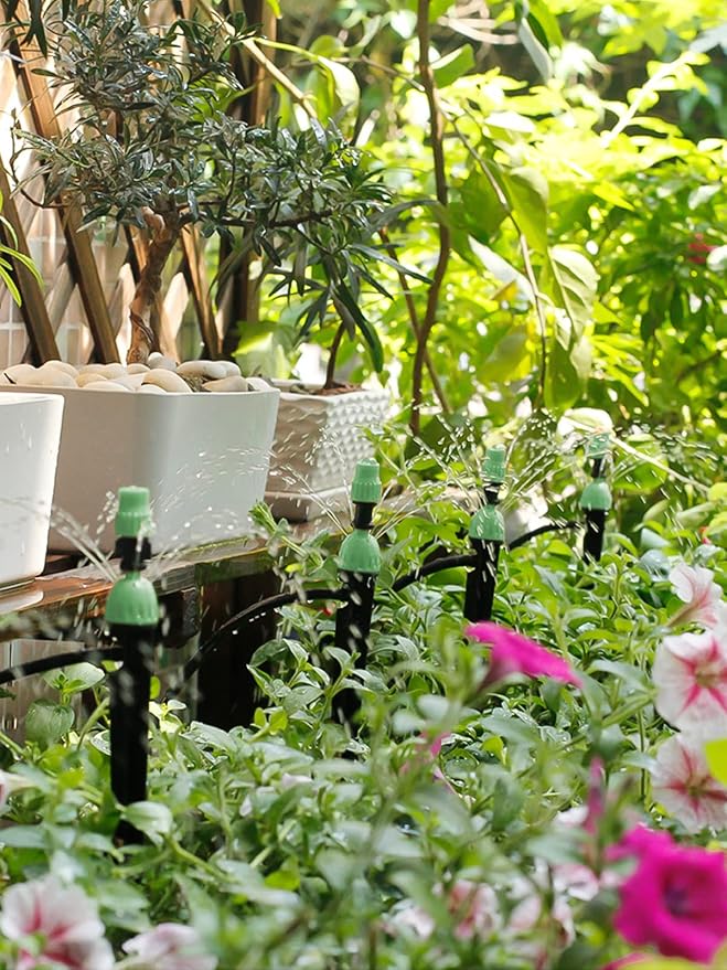 • ✔New Upgraded: Upgraded irrigation system dripper. The dripper and fixed rod are combined into one, the installation is more convenient, simple and fast Adjustable spray or drip irrigation modes, which allow each plant to be well looked after.
