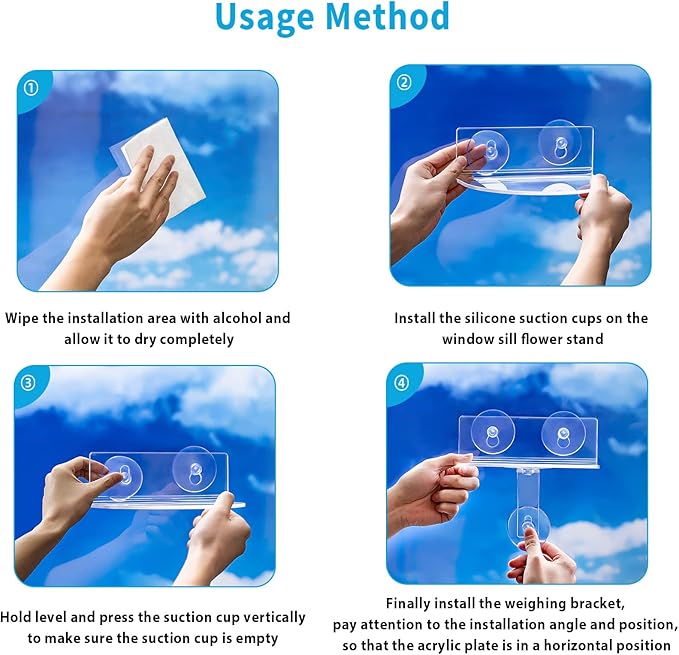 - STRONG SUPPORT BRACKET SET : Each acrylic suction cup home is equipped with a load-bearing bracket (equipped with a load-bearing 4-8 lbs) to increase the larger weighing capacity to keep it stable