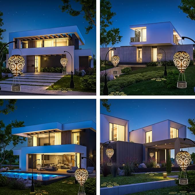• Wide Application:This solar powered lantern come with a metal "S" hook, can be hung anywhere easily, such as balcony, porch, pergola, tree or a shepherd hook. In addition, hot air balloon has rich meanings, which represents courages, hopes, dreams, romantic love, so it's a great present for your family and friends
