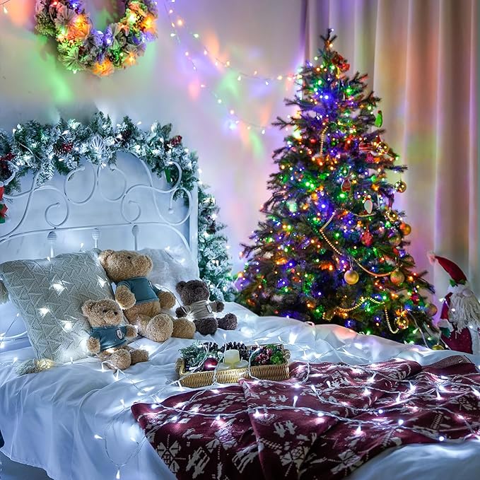 - String Lights Indoor for Bedroom Decorations: The indoor white string lights are the best choices for Christmas room decor. Ideal for ambience mood decoration in your bedroom, living room, room for children and girls, etc. Also perfect as gifts for family and friends. Christmas fairy lights create a cozy atmosphere, clear wire makes them almost invisible in daylight and bright but not dazzling at night, ideal for year-round use.