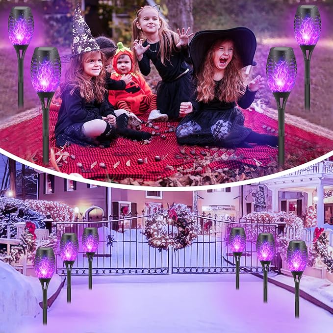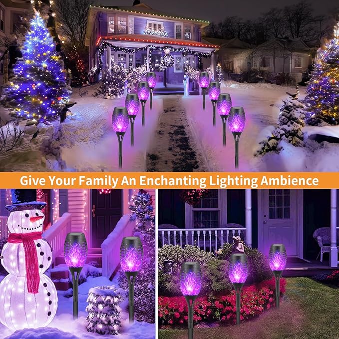 12-Pack Solar Flickering Flame Torches – Waterproof Solar Garden Lights, Outdoor Solar Lights for Yards, and Flame Torches for Patio and Pathway Decorations