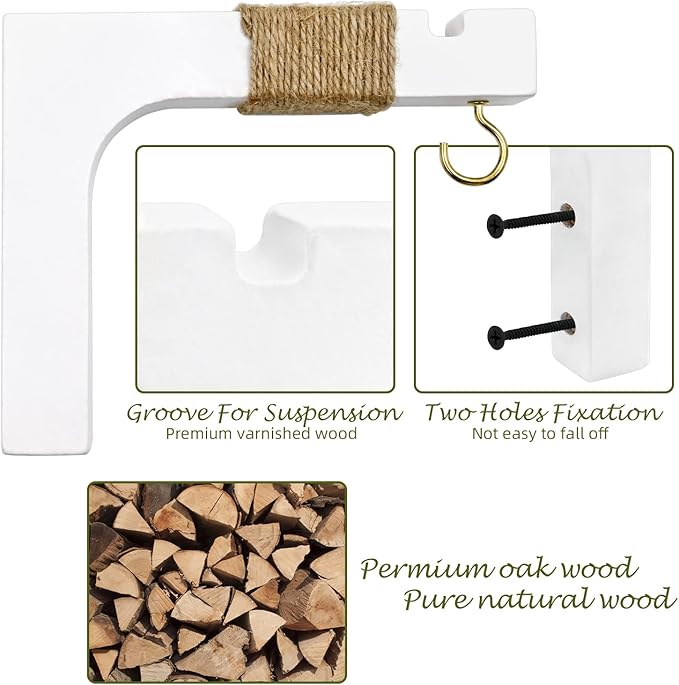 - 【Package Contents】You will receive 2 pieces hanging plant hooks with 4 mounting screws and 4 drywall anchors, the wooden hooks size is approximately: 6 inches long, 5 inches high and 1 inch thickness. Hemp rope attached as decor for farmhouse style. Enough for you hanging planters for indoor plants and other decors everywhere in your home.