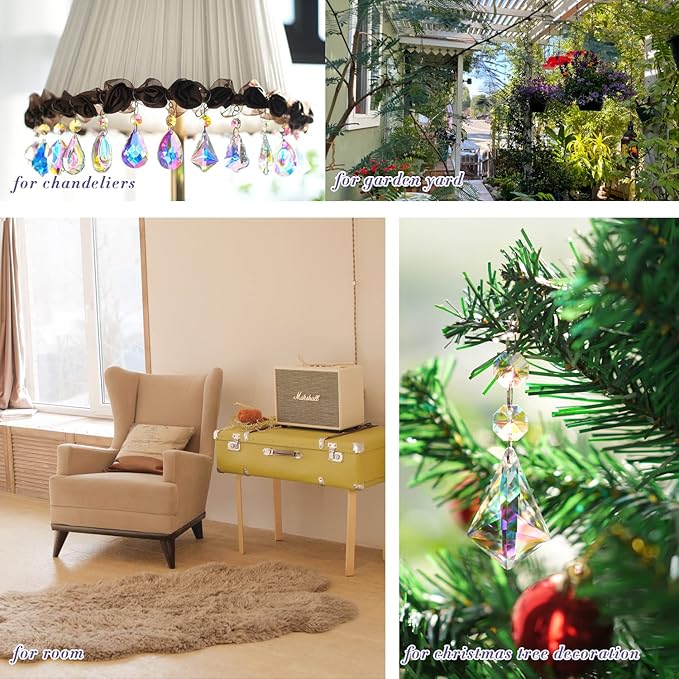 • Colorful Crystal Suncatcher Hanging Prisms: 12 pcs various shape k9 Crystal Chandelier Prisms, each crystal prism include 1 pc prism pendant connected 1 pc 0.55โ€/14 mm glass bead with stainless jump ring and small hook. Great for feng shui, Car Charm, Chandelier Decoration, Home Decoration, Wedding DIY Ornament, cast the beautiful rainbows, add your room more colorful