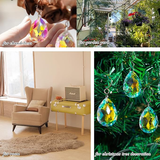 • Versatile Crystal Chandelier Parts: ideal for chandeliers, ceiling lights, and candelabra,lamp, suncatchers, crystal strands, art projects, jewelry making, garden project, weddings, baby rooms, Christmas tree decorations