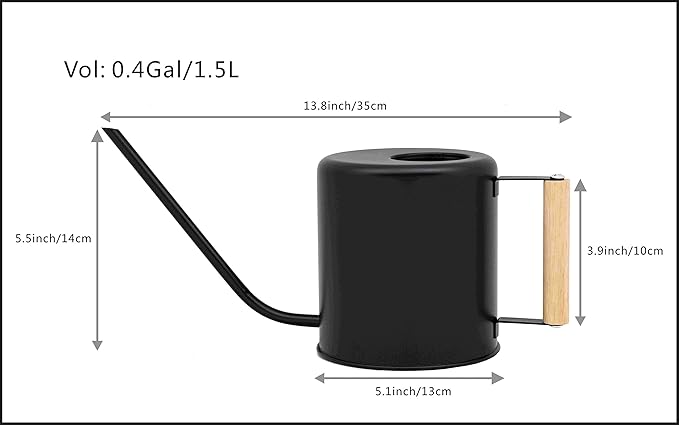 1.5 Liter Black Watering Can for Indoor Plants, House Plants, Flower Watering, Outdoor Plants - Small Metal Watering Can with Long Spout