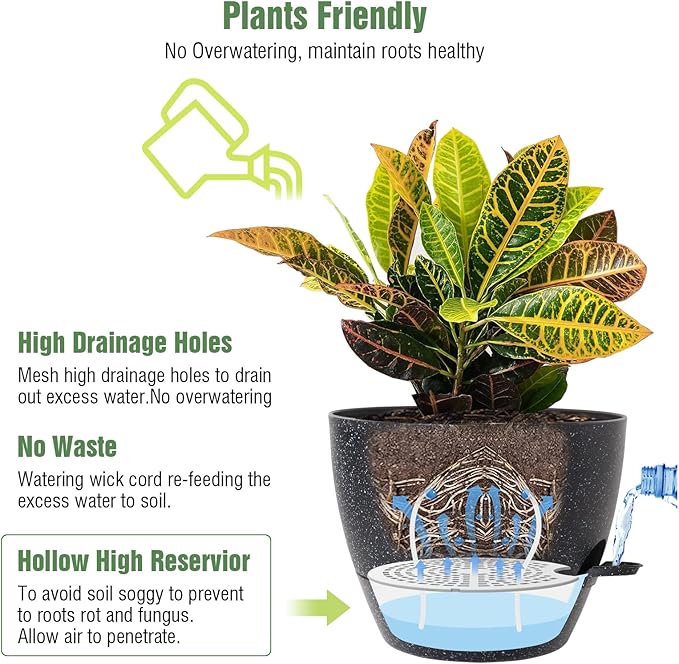 • Self-Watering System: Removable watering feeder allows you to water from the bottom or top without root rot.