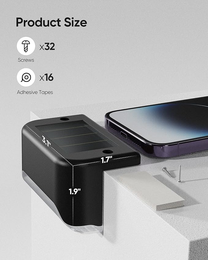 • IP65 Waterproof & Durable: Its high-quality casing material ABS and weatherproof feature guarantee the JACKYLED step light's durability. These solar fence lights can survive any weather conditions, including heat, rain, and snow.