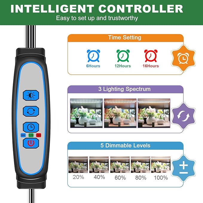 • Upgraded Smart Controller: Our plant light strip features 5 dimmable levels, 3 spectra modes (white, warm white and red, mix light), and upgraded automatic on or off timer 6H, 12H, 16H; To create the optimal growth environment for your plants