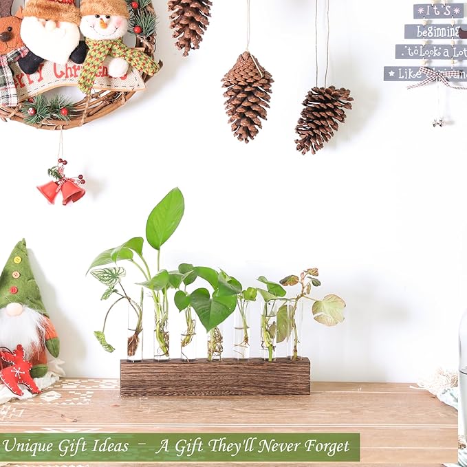 - 【Package Includes】: 1 wooden base, 7 test tubes, and 1 cleaning brush. The thick packaging ensures that your product arrives in good condition. Perfectly presented in a beautiful gift box, this test tube plants propagation station makes an ideal gift for birthdays, Mother’s Day, Christmas, Valentine’s Day, and Thanksgiving. It’s a thoughtful present for nature lovers and gardeners, as well as a charming decoration for wedding parties, anniversaries, housewarmings, and other special occasions.