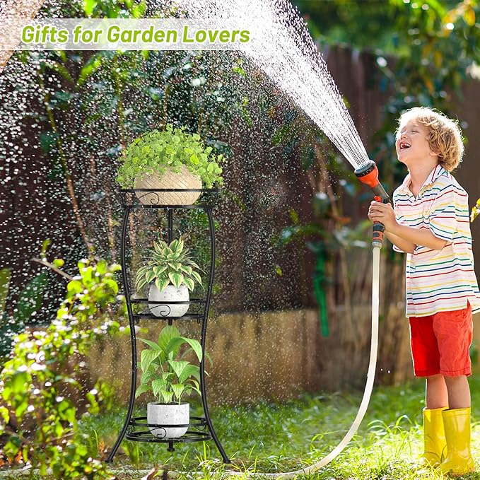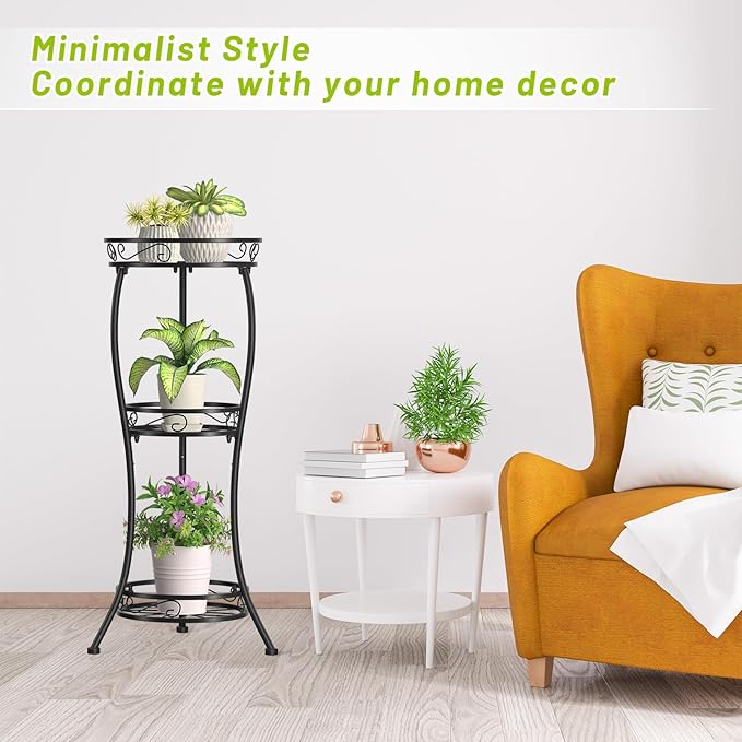 - 【Rustproof & Weather Resistance】: The well painted black powder coated finish provides strong weather resistant for this flower stands for indoor plants. It can fit indoor or outdoor use, meet your gardening needs in balcony, living room or patio areas.