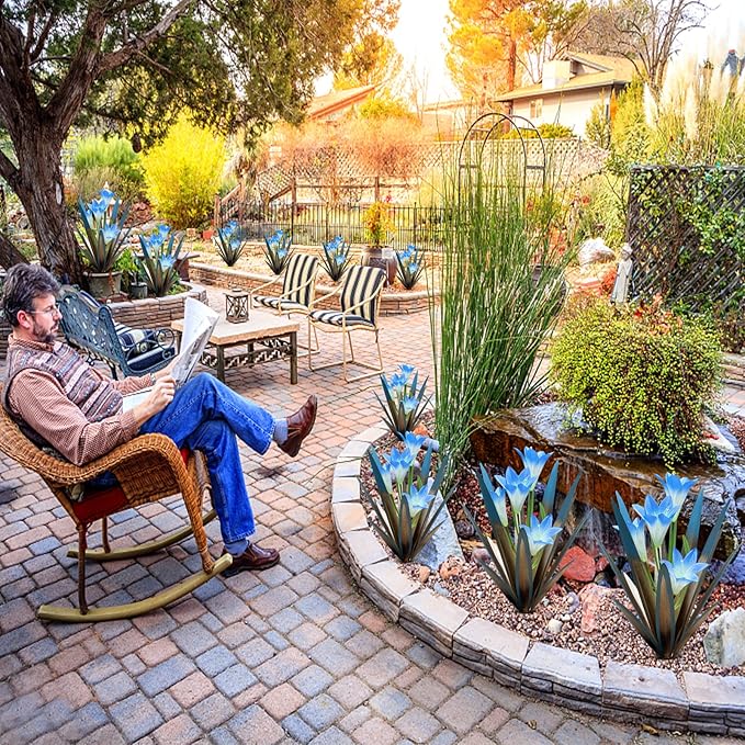 Homight Metal Agave Plant Outdoor Decoration Outdoor Garden Decoration Lily Mexican Yard Art Plant Garden Agave Lily Decorative Garden Gift… (3 Big Blue Lilies)