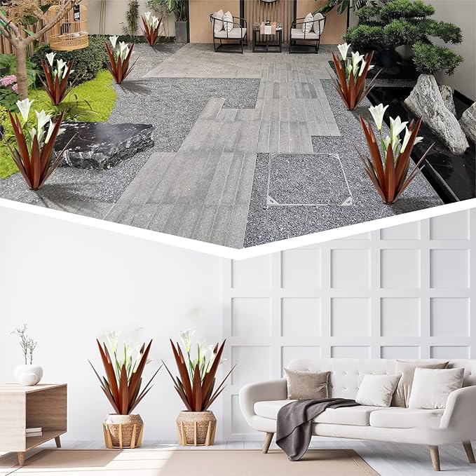 - 【 Easy to install 】 The metal agave is 16 inches tall, with nice lily flowers in the middle, and comes with a ground insert for more firm resting on the ground. Just place it anywhere you want, garden, yard, patio. It can be placed on the ground, on the patio, and used as a planter
