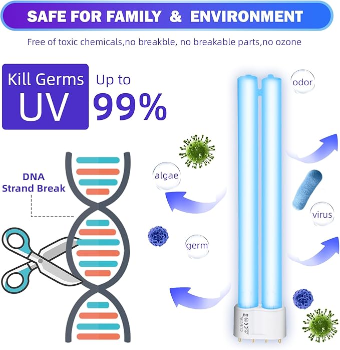 • 【Powerful 18W UV】With a wattage of 18 and a length of 8.75" 4-pin base, provides easy installation and compatibility with various devices. EPA Est. No. 96998-CHN-1.