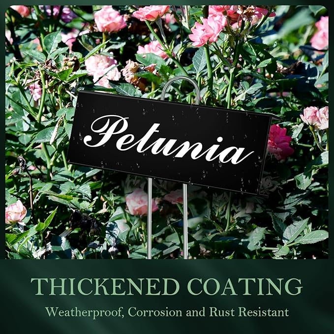 - Attractive Design: Not only are these plant labels practical, but they also add a touch of elegance to your garden. The sleek metal design complements any outdoor space, giving it a polished and organized look. Use these markers to create a well-organized garden or to add a decorative touch to your potted plants.