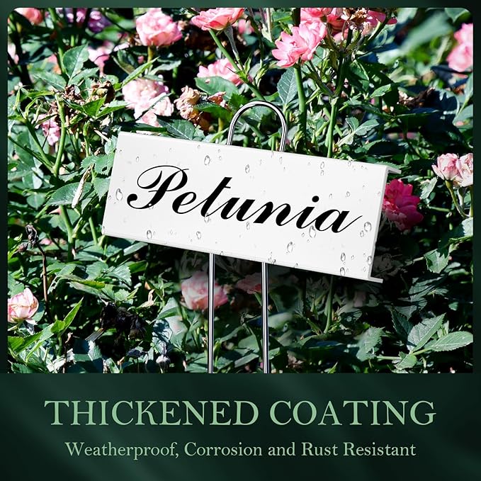 - Attractive Design: Not only are these plant labels practical, but they also add a touch of elegance to your garden. The sleek metal design complements any outdoor space, giving it a polished and organized look. Use these markers to create a well-organized garden or to add a decorative touch to your potted plants.