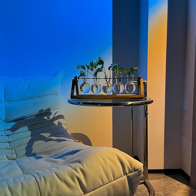 - [Fashionable Plant Propagation Stand] - Planter Terrarium with Retro Solid Wooden Stand is ideal for plant propagation and cuttings. Glass container with bulb vase makes it easy to observe the growth status of plants. Suitable for floral decoration, home office decoration and beautiful gifts.