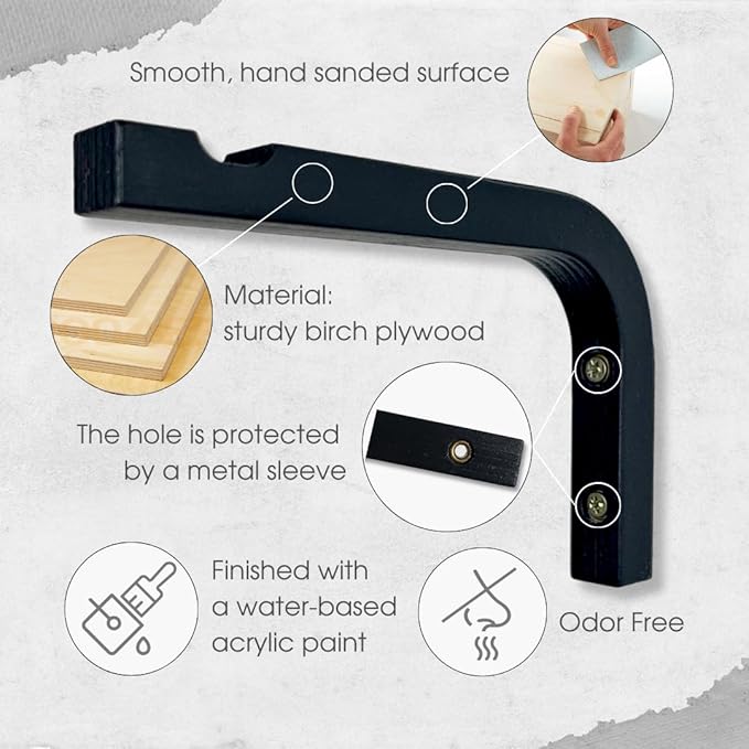 2-Piece Set of Plant Hooks for Wall 6 inch - Mounted Wooden Plant Hook - Indoor and Outdoor Bracket Plant Hanger for Planters, Lanterns, Bird Feeders, Patio Decorations (Black)