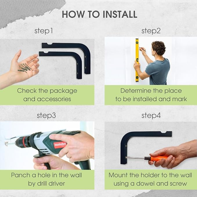 - EASY INSTALLATION: With the included hardware and easy straightforward instructions, mounting our plant hanging bracket for wall is a breeze. Our hooks for plants comes come with 4 screws, 4 dowels and 4 self-adhesive screw covers for installation.