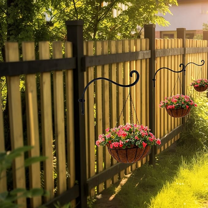 • Easy to Install: Setting up the Plant Baskets Hooks is breeze. A full set of mounting hardware is included, that make it easy to install it on wooden fence posts, deck rails, or interior and exterior walls.