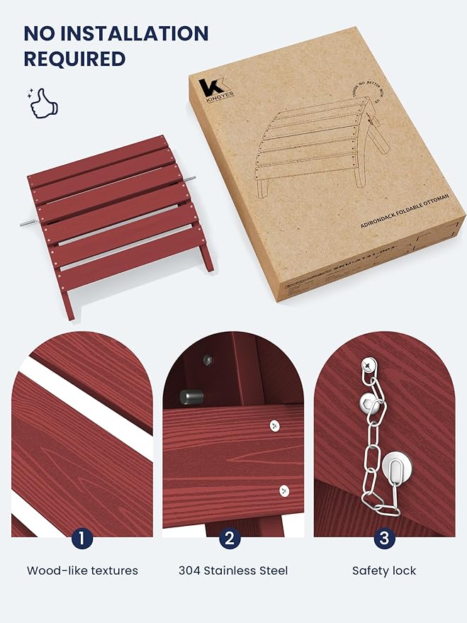 - [Low Maintenance]: Enjoy the hassle-free ownership of the KINGYES Adirondack Foot Rest. Its HDPE material requires no painting, staining, or waterproofing, making it the ultimate low-maintenance outdoor accessory.