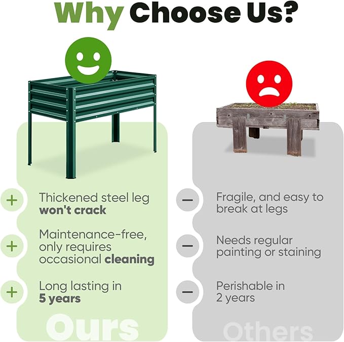 - 【Effortless Drainage】Ample drainage holes allow plant roots to breathe and drain properly. Comes with a non-woven fabric liner to ensure efficient drainage while containing soil, enabling worry-free indoor and outdoor use. The elevated garden bed is ideal for garden, backyard, balcony, and deck.