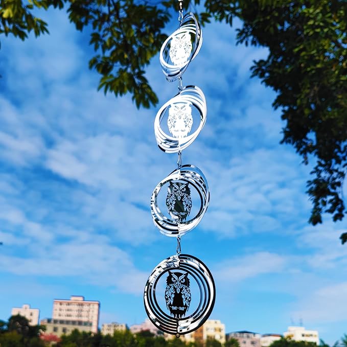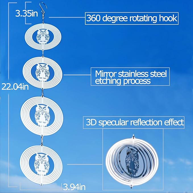 - These are 12 swivel hook and 12 Discs Owl Bird Scare of very shiny reflective matel wind spinners can rotate easily in the breeze, protect your garden, farm, and lawn by creating a bright flash that scares away birds.