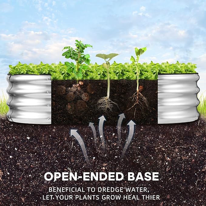 • Open base: This raised garden bed metal galvanized is designed with an open base, Sits on the ground garden bed which can effectively avoid water accumulation .