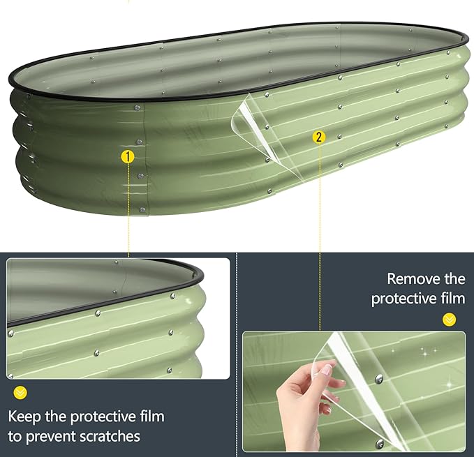 • Double Thickness Super Stability: The thickness of the planter box is 0.6 mm, and the thickest overlap of galvanized sheets can reach 1.2 mm.Adding screw fastening edge at the interface. Oval shape that won't deform allows it to hold a large amount of soil.