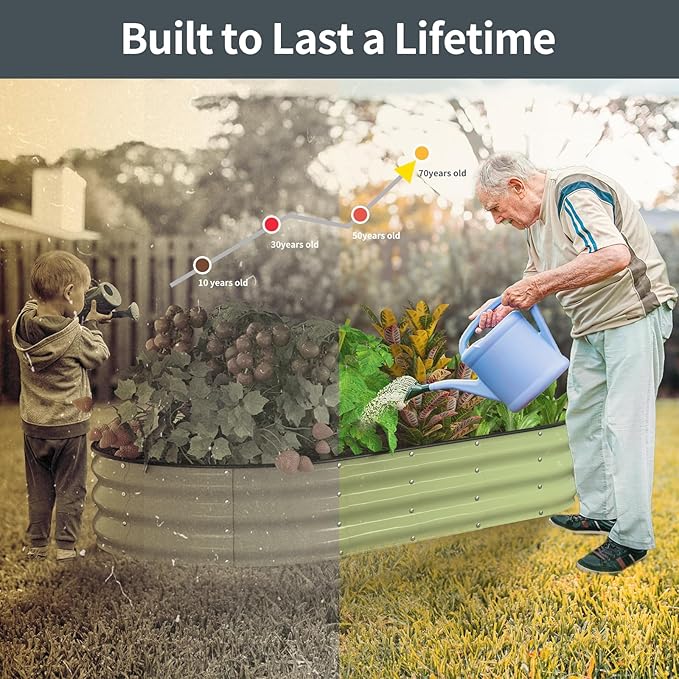 • Upgraded Galvanized Material: Raised garden beds outdoor is made of double-layer galvanized metal sheet with anti-rust coating to avoid rusting. The nuts and bolts are also galvanized. Super stability and rust resistance.