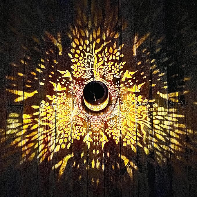 - 【Easy to Use&Size】- Before using, please press the button to put it in the "on" position. The Tree of Life solar outdoor lantern will absorb sunlight to charge for about 6 hours during the day and will light up for about 8 hours at night. It automatically turns on at dusk and off at dawn, making it super easy to use. Size: 6.8"H x 4.7"W x 4.7"L