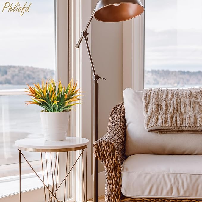 16Pcs Artificial Grass Fake Plants 17.3in Outdoor Plastic Plants UV Resistant Greenery Fake Grass for Home Window Garden Office Patio Hanging Planter Pathway Front Porch Décor Orange Yellow