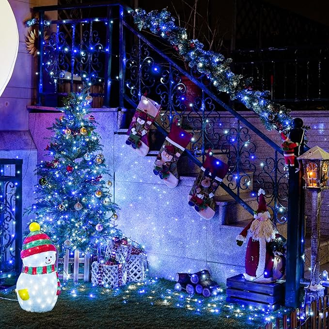 JMEXSUSS 2 Pack Blue and White Solar String Lights, Each 100 LED 33ft Solar Christmas Lights Outdoor Waterproof, 8 Modes Green Wire Solar Lights for Outside Garden Patio Party Decoration