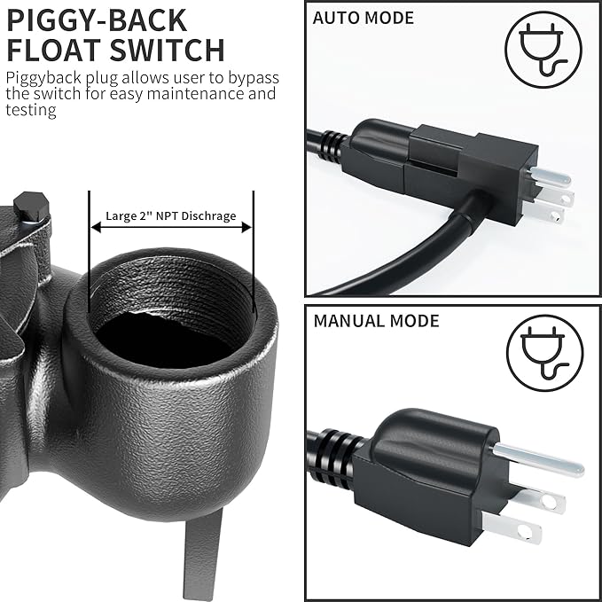 - [AUTOMATIC FLOAT SWITCH] Adjustable float switch automatically turns on/off the pump depending on water level in sump basin or septic pit. When the water level rises above the pump, the pump will automatically start working. When the pump can not pump water, it will automatically disconnect the power