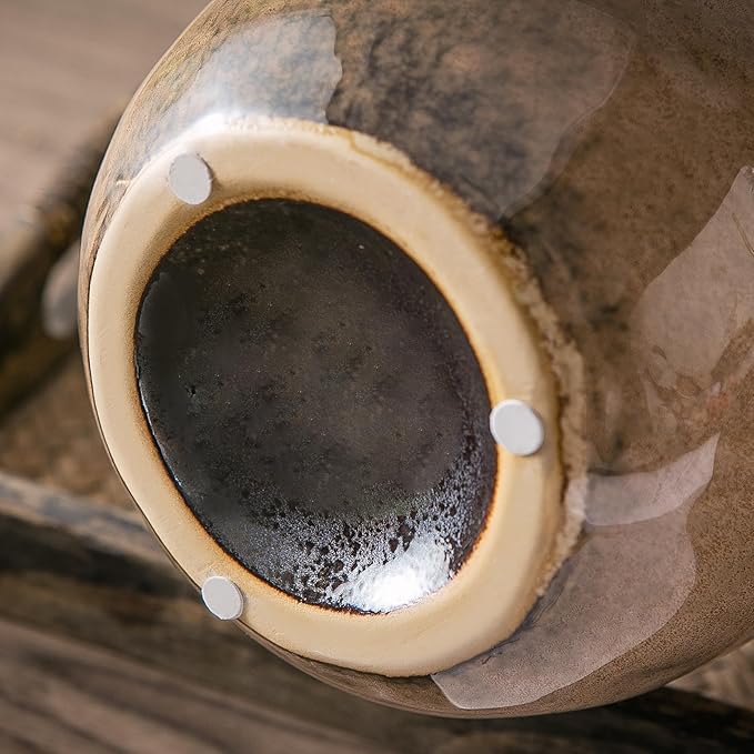 - Unique Ceramic Brown Glazed Design - This brown ceramic vase with unique glazed design.The modern farmhouse vase can be used with faux flowers, fresh or dried flowers as decorative pieces for any room's decor. The rich and vibrant hues of blue make it a captivating centerpiece that effortlessly enhances any space.