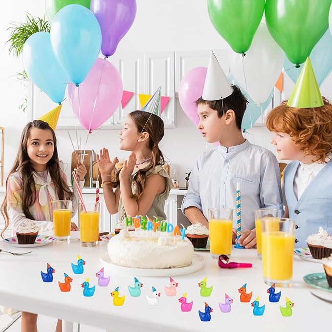 - CUTE HAT DESIGN - Our mini ducks aren't just adorable, wearing various colors of birthday party hats, look vivid and eye-catching, which will easily grab kids' attention and bring more happiness to your birthday, festival, party, gathering