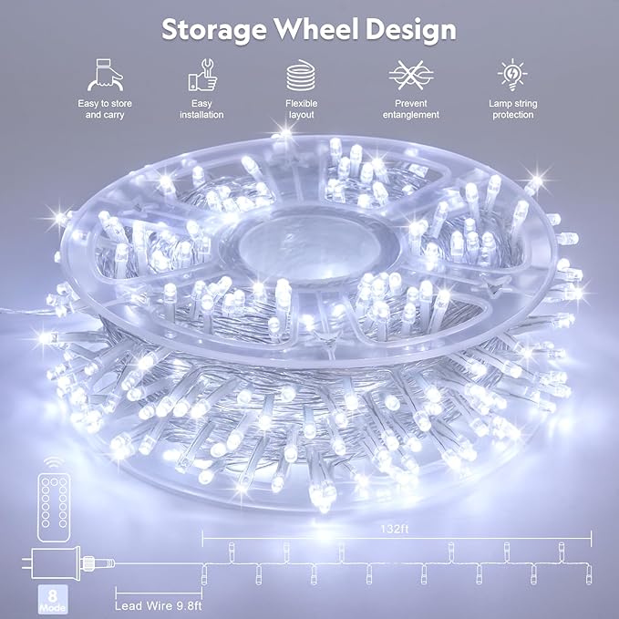 • Elevate your holiday decor with 400LED 132feet cool white Christmas lights,perfect for Christmas trees, festive lighting,Christmas wreaths, party ambiance, These twinkle lights also add charm to backyard canopies, patio,wedding