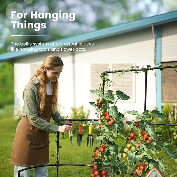 - 【Expanding Planting Space】Raised garden beds equipped with trellises are perfect for climbing plants, vines, and tall crops like cucumbers, tomatoes, and beans. Even in limited spaces, they support plants to reach their ideal heights. This helps you effectively utilize vertical space, allowing vines to thrive and boosting yields.