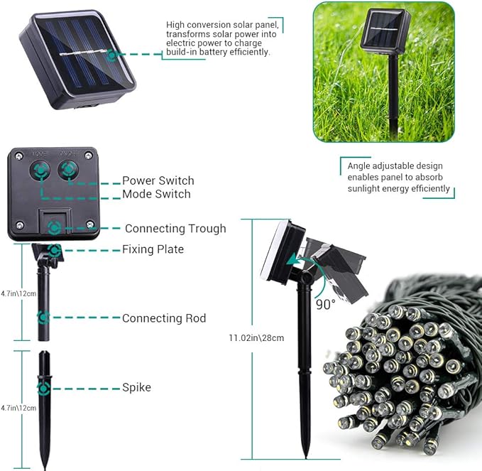 • Widely Used Solar String Lights: These solar-powered string lights are perfect for Halloween, Christmas, weddings, holidays, gardens, yards, lawns, fences, porches, trees, roofs, and decks